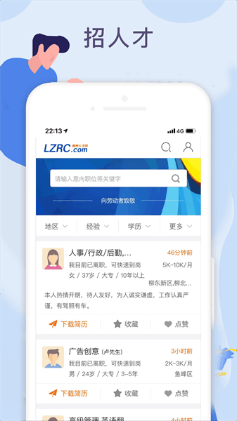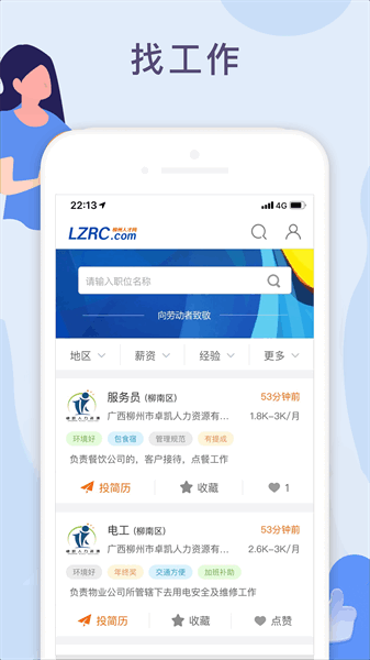 柳州本地的大型人力资源专业网站,为企业及个人提供网络招聘、网络广告、网上人才交流会、网上人才信息查询、网上求职等多项服务,旨在方便广大求职者和招人的企业用户,用户下载后可以方便的在手机上投递简历,为求职者量身打造的求职客户端,让求职者随时随地找工作。