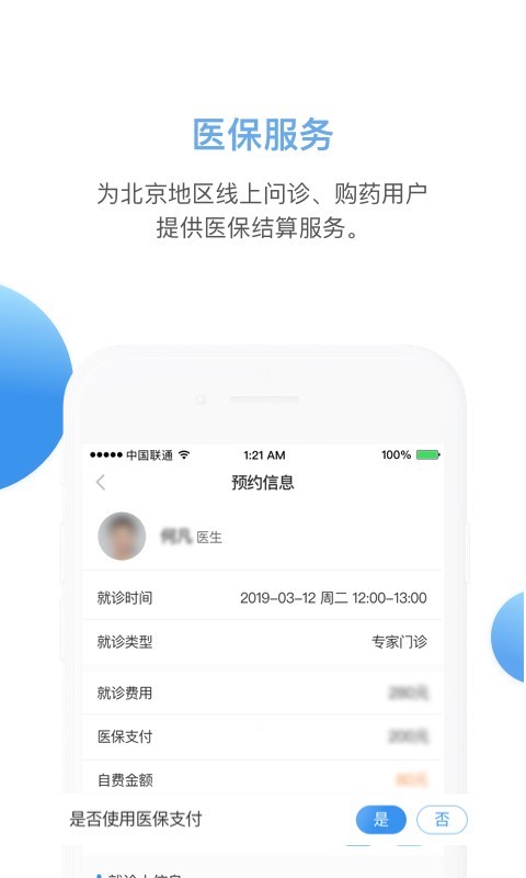 北京地区在线预约挂号及购药的用户,费用支持医保结算,省钱又省心。