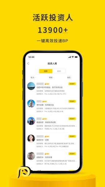 2.汇聚20年创投行业积累,6050+VC/PE机构、13900+实名认证投资人入驻,为创业者快速寻找、精准匹配机构及投资人;