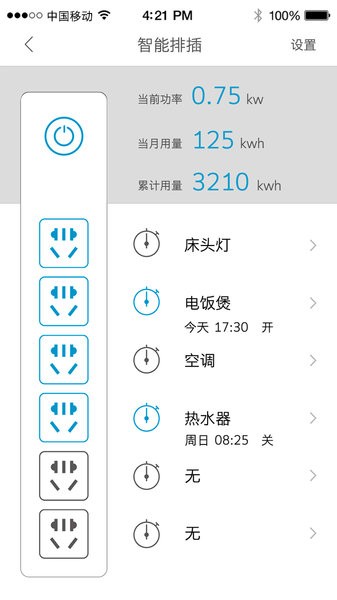 预先设置各个插孔的开关时间,使用户更省心。