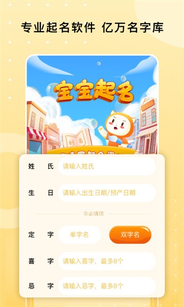 可根据姓氏、出生状态、已出生或者未出生取名字,出生时间、期望性格、定字等多种条件来获得好名字。
