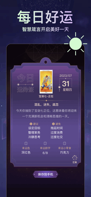 月见塔罗最新版是用来提供塔罗牌占卜解读的应用软件,每日指引,智能推荐,带来多种牌阵解读,深入分析,并提供专业的建议,还有智慧箴言可以阅读了解,掌握更多塔罗牌知识,带你探索心灵,发现更多未知,启发思考,激励行动!