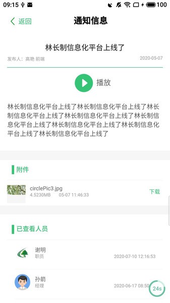 -- 实现智能化的办公服务,各种有关于林长和巡林的工作的信息及时通知了解