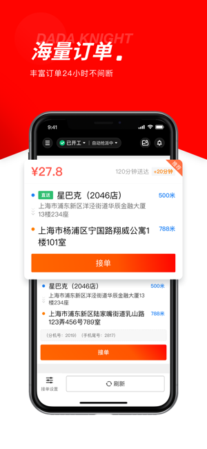 京东外卖骑士版即为京东外卖配送app,是骑手们的得力助手。它提供精准智能的派单系统,合理规划您的送餐路线,提高配送效率。实时的订单提醒,让您不错过每一个赚钱机会。还有贴心的导航功能,为您指引最快到达目的地的道路。清晰的收入统计,每一笔辛苦付出都一目了然。在线客服随时待命,解决您配送过程中的问题。