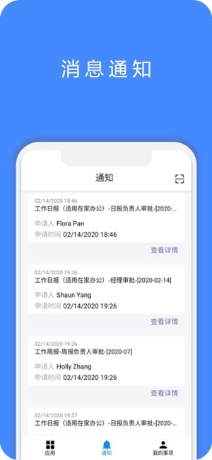 通过易企办提供的表单及流程引擎自动化组织内部的各种类型的业务过程。支持跨部门的业务审批流程,以及通过通过灵活的流程规则设定,自动化的数据流程触发。
