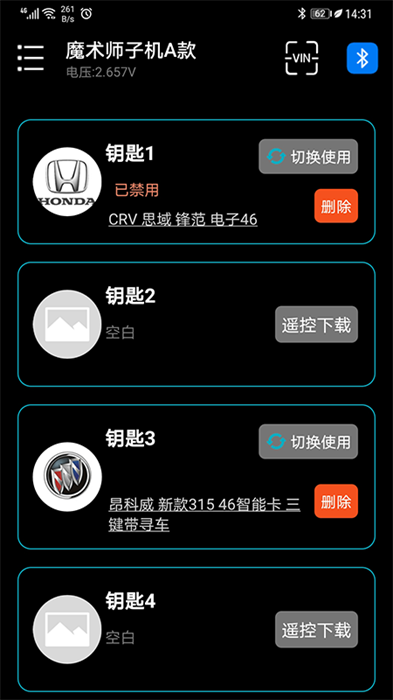 魔术师子机app是一款全新的手机智能钥匙软件,安装后可以直接用手机操控车辆开关,完全告别实体钥匙的麻烦。它支持多种电子钥匙模拟,可以自由切换并解锁,特别适合忘记带钥匙的时候使用。操作非常简单快捷,而且机身小巧,完全可以放进口袋里随身携带。