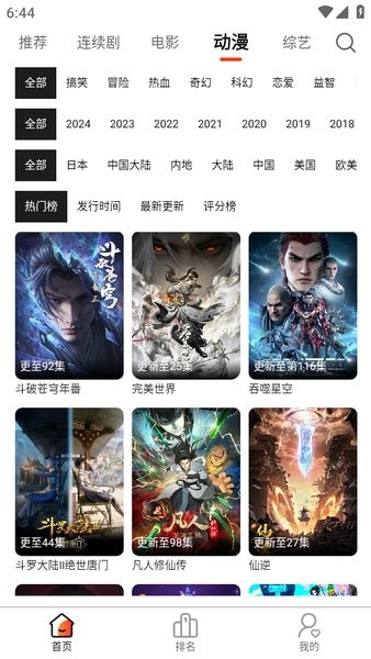 打造了连续剧排行、电影排行、动漫排行和综艺排行,四大榜单;