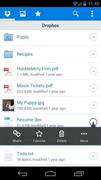 dropbox手机客户端是安卓版的文件管理应用工具,不仅拥有简约的界面,功能也比较丰富,可以支持视频、图片等文件内容的上传存储管理,支持同步备份等服务,还支持多种平台,使用起来安全又放心,操作简单又高效,好用又实用!