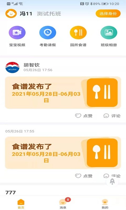 4、为幼儿园和家庭搭建的家校共育系统,包含宝宝视频,校园动态,考勤请假,园所食谱,消息推送等功能;