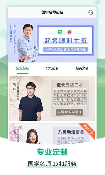 起名通模式:起四字名、双胞胎起名、取英文名、取小名,满足您宝宝取名的多元化需求!