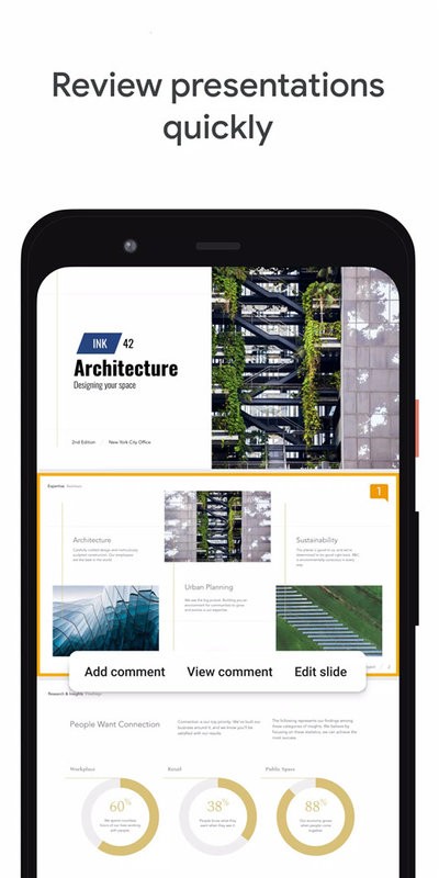 Google Slides app即谷歌幻灯片,是谷歌旗下提供幻灯片办公服务的应用软件,可以随时在线进行编辑创建新的幻灯片,还提供不同类型风格的模板素材,实时编辑共享演示文稿,展示你的创意,还可以连接到其他 Google 应用,提高工作效率!