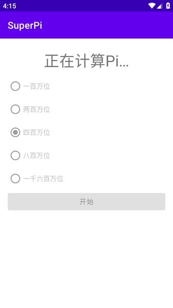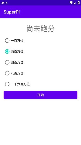 superpi手机版是功能强大的手机跑分测试工具,体积十分小巧,轻便简单,不占内存,支持一百万位、两百万位、四百万位、八百万位等系统性能测试,办理轻松计算出cpu的性能数据分数,了解运行效率,操作简单又快速,十分方便!