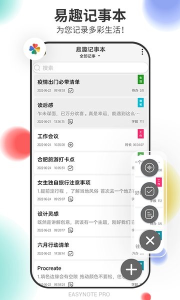 易趣记事本是一款功能丰富的记事备忘录应用,它操作简单流畅,程序小巧,使用方便,您可以使用它随时随地记录生活中的点滴。