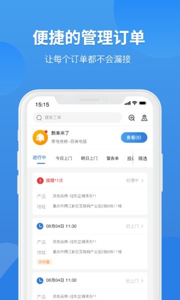 3、十分便捷的订单管理,根据订单预约的时间按照顺序进行排列。