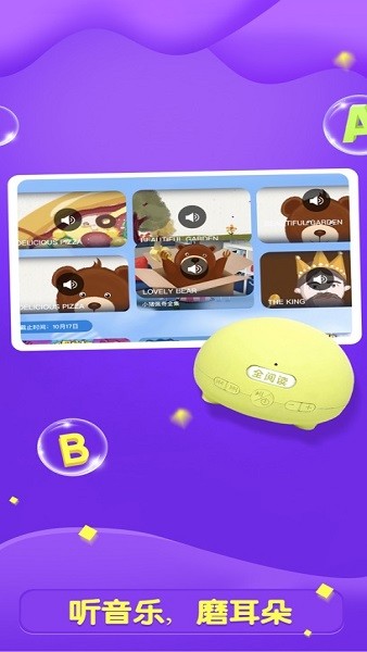 2.提供海量音视频资源,包含歌曲歌谣、动画片、电影等,让孩子通过听音看动画轻松学习英文、练习发音。