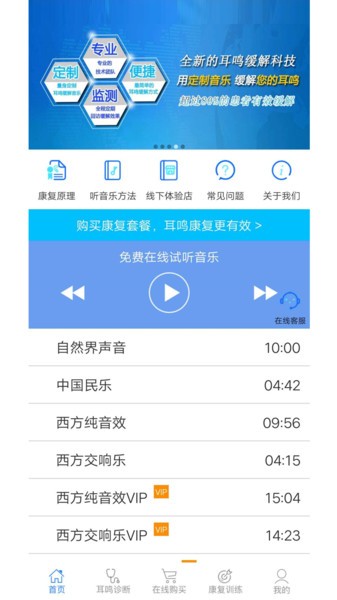 2、专业的耳鸣康复计划,让客户可以轻松进行线上耳鸣康复;