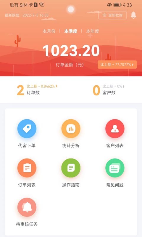 葵花药直达业务员app最新版能够查看详细的客户和订单列表,能够查看每月的订单和客户数,客户商品销量一目了然,订单进度实时可查,有非常详细的统计分析,让业务员能够清除自己的业务情况。