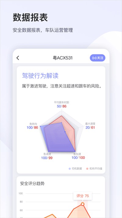 车辆的行车记录过程以及司机的安全意识都会在软件中展示。