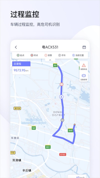 智能统计车辆行驶轨迹,支持实时查看,也支持查看轨迹回放。