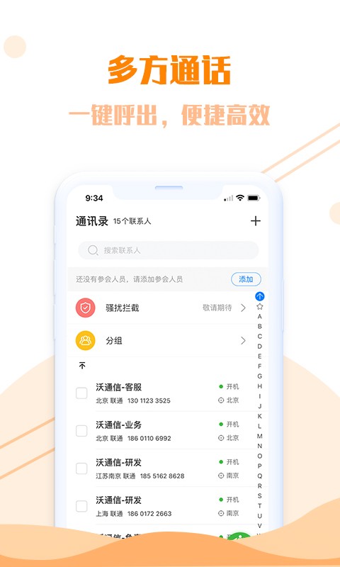 沃通信是一款基于5G的升级电话产品,可提供多方通话、用户状态、位置和个性化信息等服务,用户在手机通讯录中即可看到联系人开关机状态、头像、等级、关系和所在城市等信息,并可勾选多人直接发起多方呼叫,补足传统电话产品相对于互联网通信软件的功能和体验短板。