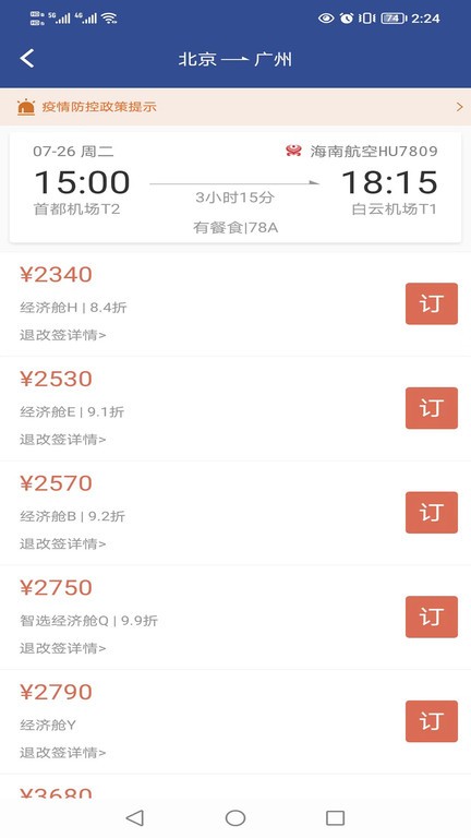 【商旅管理】通过预设置的差旅政策,对出行预定进行有效管控