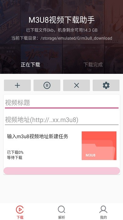 第三步:复制m3u8链接到下载板块输入视频标题并开始下载