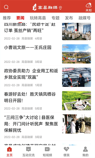 高县融媒是一款由高县融媒体中心打造的首款服务高县人民的APP,该APP以服务高县人民群众为初衷创建,该APP除了服务类目外,还附带了新闻阅读,精选电视节目浏览等功能。