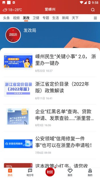 爱嵊州社区是专为嵊州本地用户打造的新闻软件,让用户随时都可以查看最新的资讯,还有许多的生活服务可以在软件之中获得,最权威的本地资讯平台,让用户看新闻、查服务都更加简单。