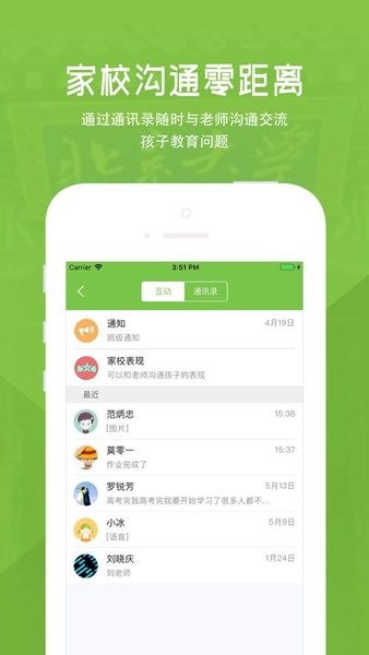 选择家校互动功能,家长能够与孩子的老师在线即时沟通