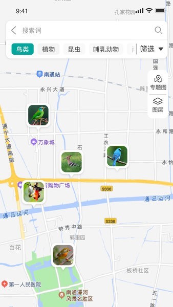 该模块通过电子地图形式展现南通市物种分布信息,方便市民朋友直观感受南通市生物物种分布情况。