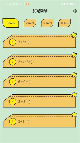 应用体积小、使用简便。随机生成10以内,20以内,100以及200以内口算题。指定口算范围随机生成口算题目。还可以选择加法减法乘法除法来设置。使用简单,操作小白,家长们用的更们省心。