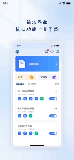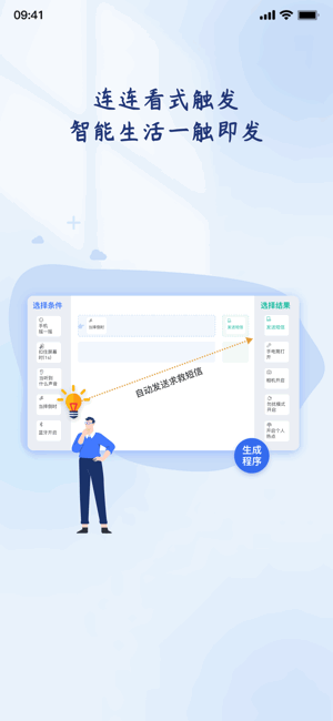 轻连编程软件是提供手机编程服务的应用app,界面简洁,功能一目了然,连连看式触发,让编程更加简单有趣,普通人也能玩转。160个条件60个结果任意组合创造亿万种可能,还提供宝藏库帮助大家快速找到所需的程序,操作轻松易上手!