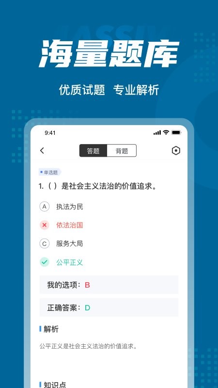 公安执法资格考试聚题库里面汇聚了往年的考试真题和多种模拟测试,用户可以直接在线进行刷题,还有错题解析,用户可以随时进行查看,并且帮助用户更好的了解易错点和重难点知识,更有考前冲刺让用户加深印象巩固学习到的知识,是大家学习的好帮手!