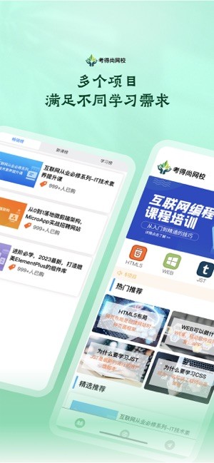 考得尚网校最新版是提供教育培训学习的网校平台,带来完善的课程服务,专门为学员学习设计,针对重难点详细解说,提供多个不同的专业项目内容,满足不同学习需求,大量题库随你刷,不断巩固提升,掌握更多知识,轻松通过考试!