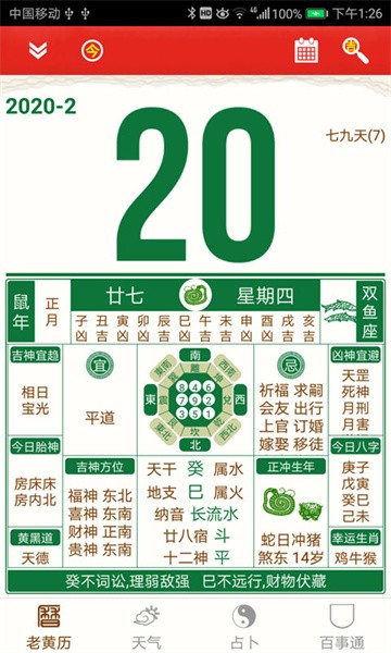老黄历万年历,相当实用。包括万年历、老黄历、天气、日历、特色民俗、资讯、生活小工具等多方面实用的功能。--老黄历万年历