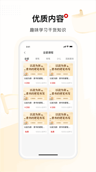 2、六品堂app不仅精选文房用品、文具低价秒杀,还提供海量书画学习视频,用户可以无限观看。