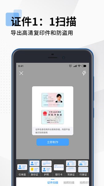 只需手机拍照扫描的图片或选取相册照片,就能快速实现文字识别、提取照片扫描、身份证扫描、拍照翻译等功能,免除了手动输入排版的麻烦,图片高清处理,可直接生成pdf或jpg文件保存或打印。是一款不容错过的扫描工具!
