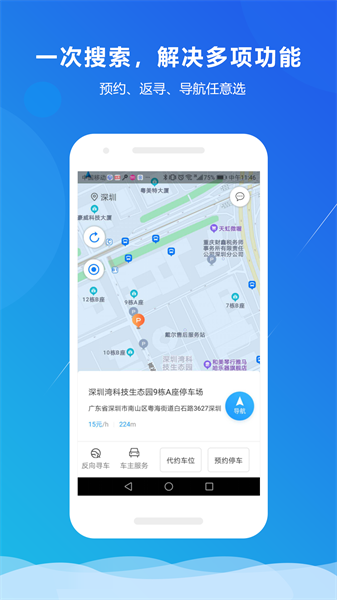 1、拥有搜索功能,可以对附近的停车场进行搜索;