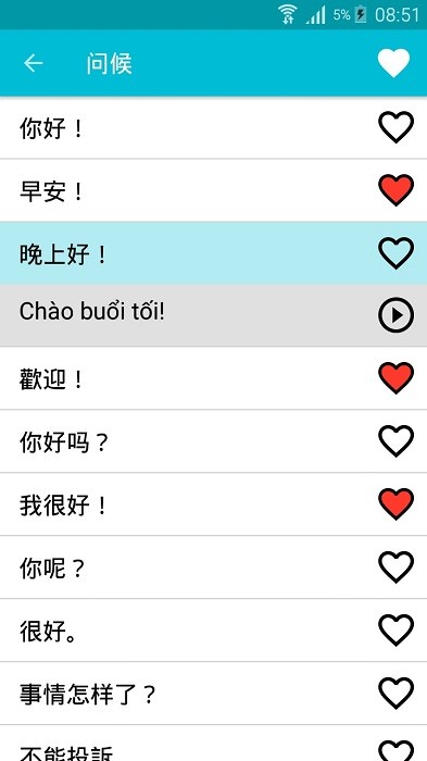 学习越南语手机版你可以在这里在线学习越南语,软件汇集了丰富课程,从基础开始教学,通过循序渐进的学习来让自己不断掌握更多越南语,还能直接选择短句来进行使用,有需要的用户可以来下载。