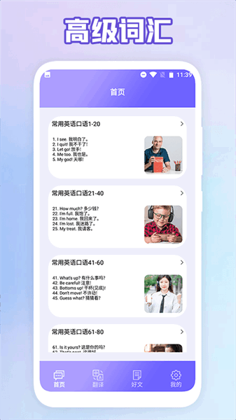 总的来说,这个应用功能挺多的,设计也很贴心,适合想提升口语水平的人用。特别是对于成年人来说,工作忙没时间上课,这款app绝对是个不错的选择!