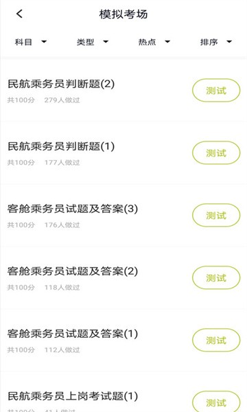 乘务员可按照自我练习的考点选择相对应的模拟试卷,也可选择搭配好的模拟整卷考试。