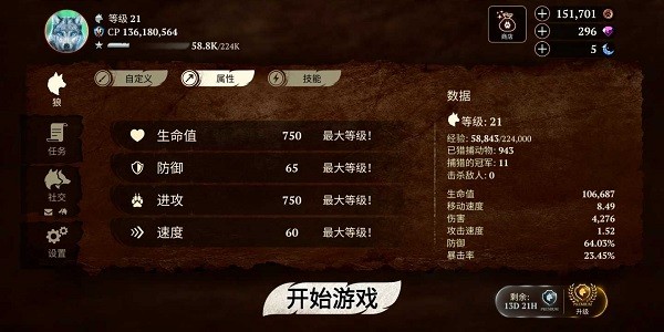 2、自定义地图,自由度也比较高,你可以给狼的种族跟皮肤进行切换,大多数都可以靠肝等级获得,氪金程度不高,有雄性跟雌性这一说,可根据自己的喜好更改。