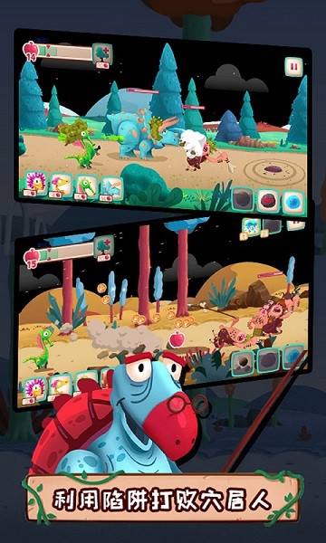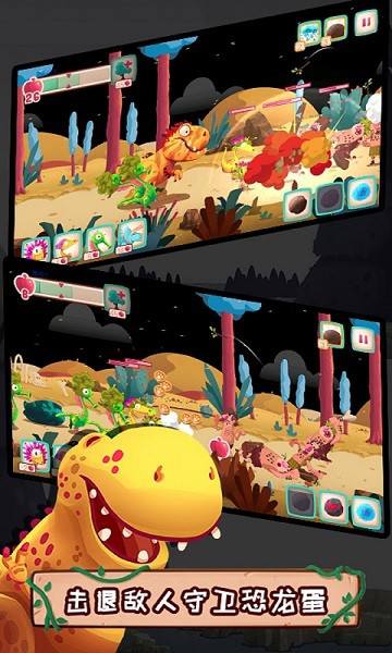 保护恐龙蛋免受野蛮部落的原始人破坏,玩家需要召唤各种恐龙与原始人展开斗争,合理运用各个恐龙的特性和技能防御恐龙的蛋。