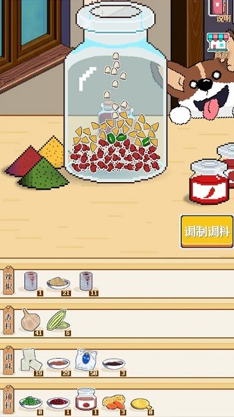 调料――烧烤的灵魂,游戏中设有辣味、香料、调料、辅料四类数十种素材供老板选择!
