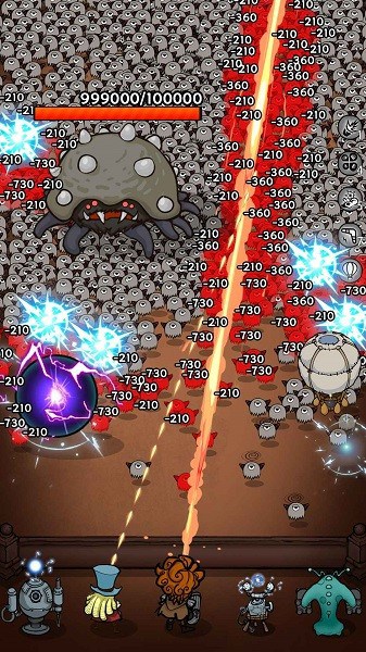 队长带领小队击溃来袭的生物,核心玩法操作简单好上手,用户只需要达到升级条件进行3选1升级技能,恰当时机释放大招。