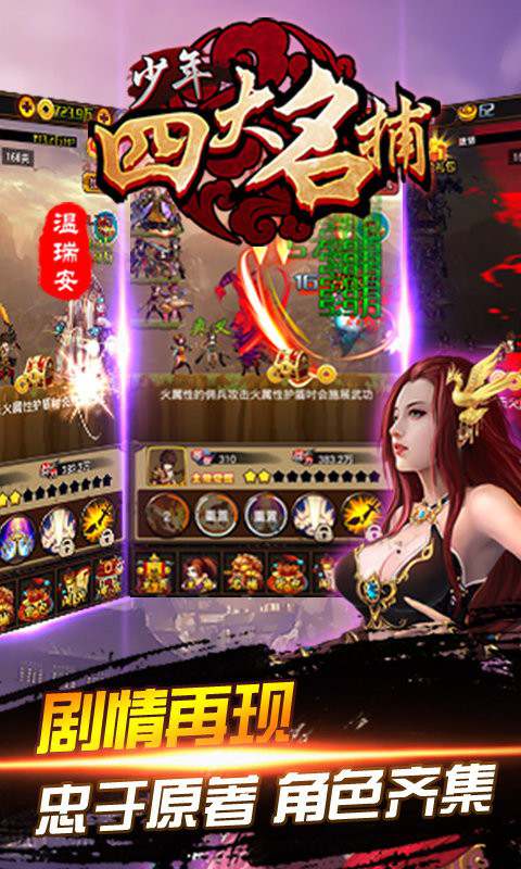 创新趣味性的点击互动玩法,结合少年四大名捕小说角色剧情。
