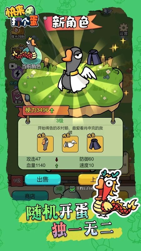 特别喜欢它的随机角色生成系统,每次都有不同的组合和策略可玩,完全不会觉得乏味。再加上丰富的关卡和BOSS战,还有各种道具和资源可以利用,整体体验非常丰富。如果你喜欢轻松解压的游戏,《快来打个蛋》绝对是个不错的选择!