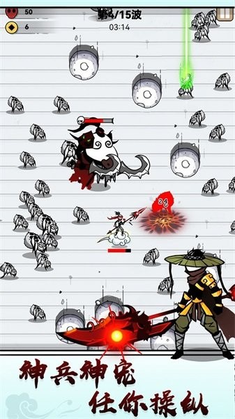 《纸上弹兵》是一款非常好玩的动作roguelike割草游戏,简单来说就是操作一个火柴人角色,在战场上用各种技能和走位击败一波又一波的敌人,升级天赋和攻击方式,体验割草的快感。游戏里的画风很有特色,结合了笔记本和火柴人的设计,看起来既休闲又有怀旧感,玩起来很解压。