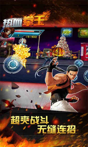 《热血拳王》是一款动作格斗类手游,以经典格斗游戏拳皇为题材重现各街机游戏人物的经典招式。熟悉的场景、熟悉的人物造型,怀旧中体现新意,效果更酷、更炫!闯关打怪,收集角色、资源;升级训练,提升综合战力;进阶,培养出街机世界中最强的斗士;巅峰对战、争霸擂台,成为真正的游戏厅皇者!超爽战斗,无缝连招,招招到肉,重温拳皇经典,寻找儿童时代的乐趣!