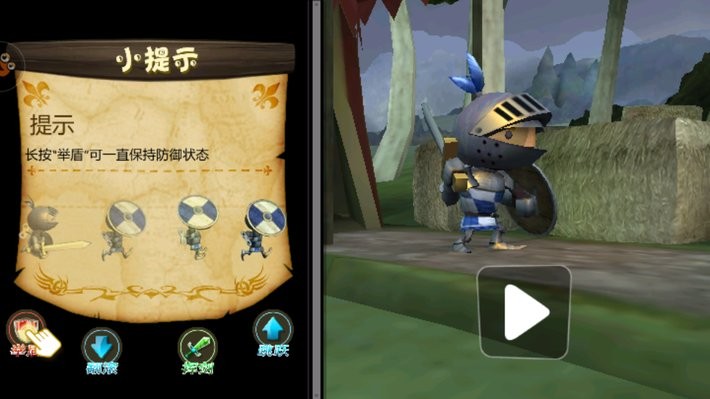 在游戏中你将扮演一名骑士,你需要从邪恶黑骑士的魔掌中救出公主,你可以不断的向前奔跑跳跃滚动等方式来躲过各种各样的障碍,并用手中的剑战胜拦路的敌人,最终成功拯救公主。